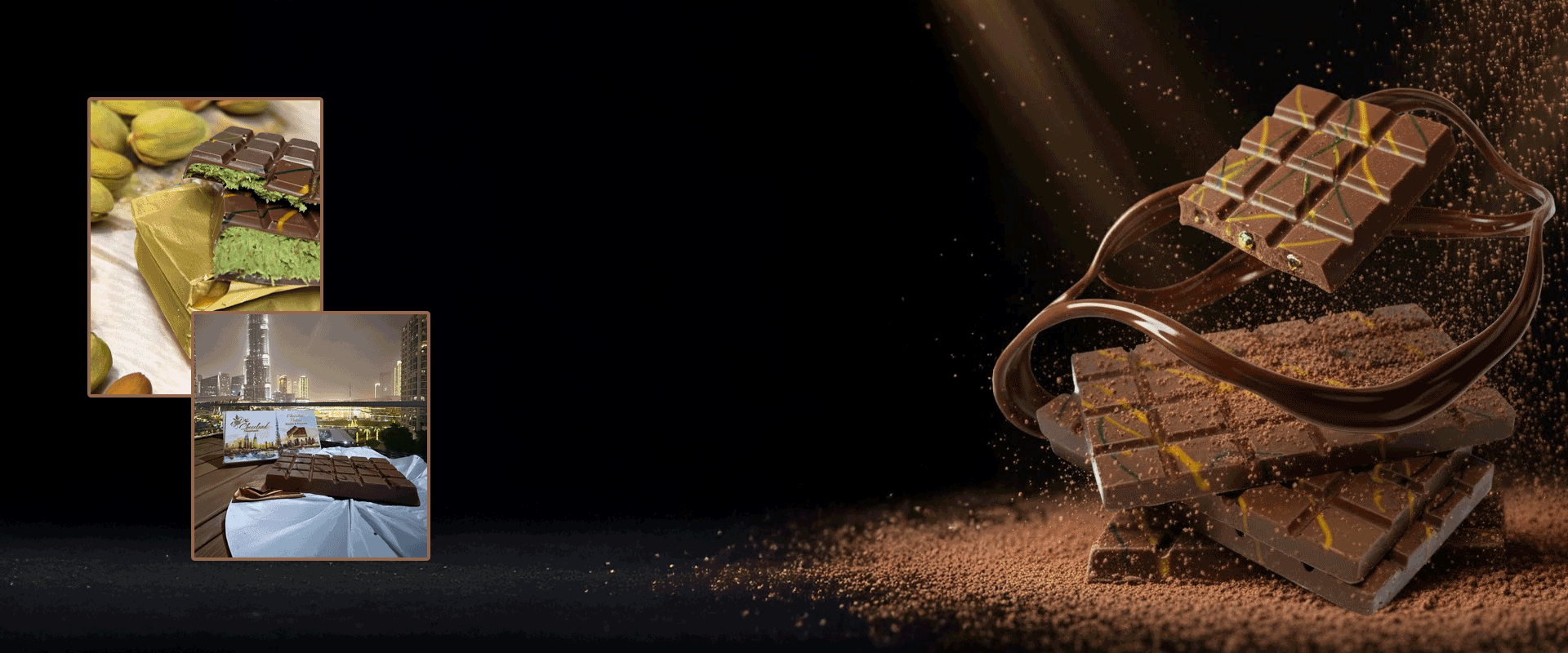 Handcrafted luxury chocolate filled with authentic kunafa and premium pistachios, straight from the heart of Dubai to your doorstep in the USA
